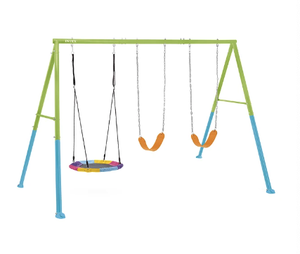 – Diversión activa y atractiva: Gracias a la experiencia de Intex en la fabricación de estructuras de acero galvanizado, estos columpios están diseñados para ofrecer seguridad y robustez. Otra forma de crear recuerdos divertidos y duraderos para familias de todo el mundo.